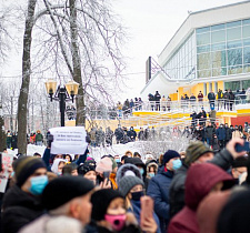 В Иванове прошел митинг в поддержку лидера Фонда борьбы с коррупцией Алексея Навального*. Несколько сотен человек собрались на несанкционированную акцию в сквере около цирка, вокруг памятника Фрунзе.